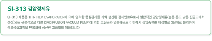 | SI-313Á¦Ç°Àº ¿ÀÀÏ¿¡ Æ÷ÇԵǾî ÀÖ´Â »êȼº ¹°ÁúÀ» ÁßÈó¸® ÇÏ¿´À¸¹Ç·Î ¹ö³Ê ¹× º¸ÀÏ·¯ º»Ã¼¿¡ ´ëÇÑ ºÎ½Ä¼ºÀÌ ÇöÀúÈ÷ ³·½À´Ï´Ù. |